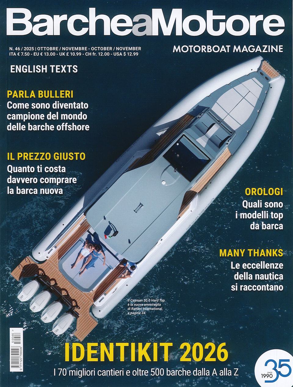 Barche a Motore è una rivista nuova per stile e concezione; si allinea ai grandi successi internazionali con un’idea collaudata e vincente: offrire agli appassionati delle barche a motore una testata propria, con tradizione editoriale esclusivamente dedicata a questo tipo di imbarcazioni, senza commistioni con la vela.